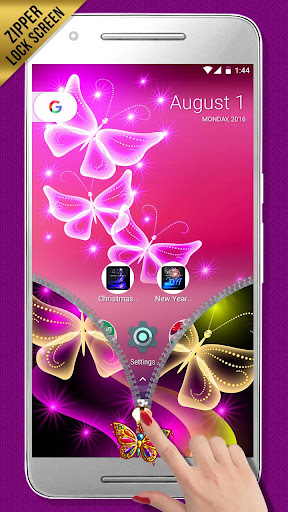 Butterfly Zipper lock screen looks like a real zipper lock and contain sounds for unlocking and opening zipper,Just unzip with pendant by sliding to open Zipper Lock Screen