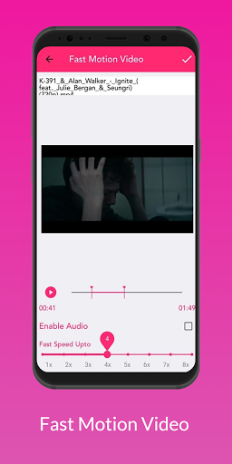 Fast Motion Video Tools Select Any One Video and Give Speed Like 2x,3x, and 4x up to 10x.
