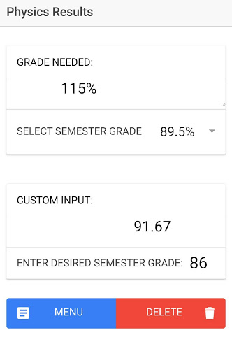 Need to know what you need on your midterm or final exam? How about get a list of EVERY possible final exam score you need for various letter grades!