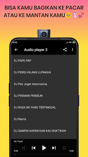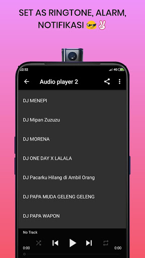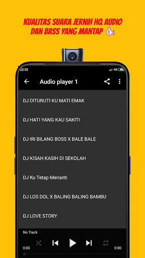 Banyak pilihan lagu di dalam aplikasi ini, jadi cocok untuk menemai hari anda dengan santai bersama teman ataupun keluarga, kalian tidak usah ragu lagi aplikasi ini hadir untuk kalian penggemar dj Remix yang ada di manapun berada , dan tentunya kalian dapat memainkanya di manapun kapan pun tanpa takut kehabisan quota.