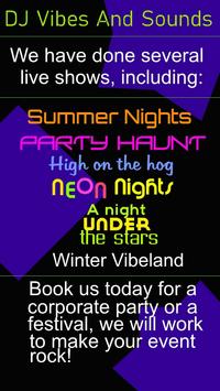 We are our of Elwood, Indiana USA and service states around Indiana. We also travel for some gigs such as Ohio, Vegas, Cali and Florida to name a few of the states we venture to for shows. If you would like to get more info about us and what we do and pricing, just drop us a line at info@djvibesandsounds.com or jump over to our web site at www.djvibesandsounds.com. You can also check us out on Facebook too at www.facebook.com/djvibesandsounds where we host a lot of photos and videos of shows we do and have done! Thanks for checking us out!