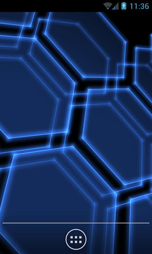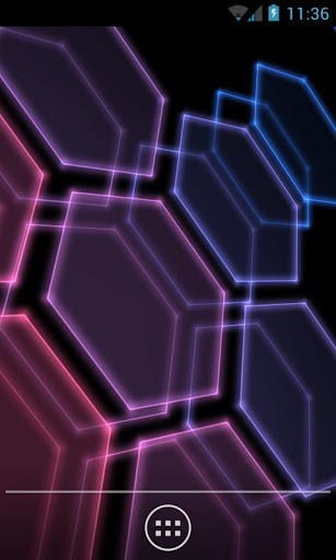 This live wallpaper displays a 3D grid of glowing, subtly pulsing hexagons. Select any color you like, or a mixture of two colors! Touch to make the hexagons tilt or glow.