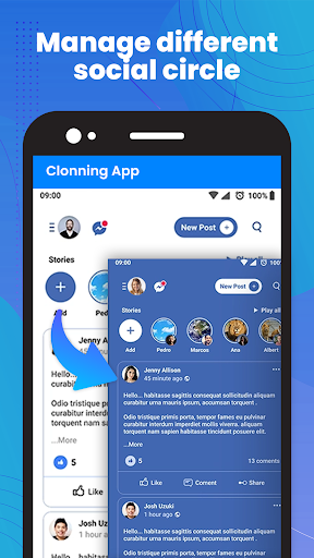 • Switch fast between different multiple accounts with just one-tap and get your parallel spaces.