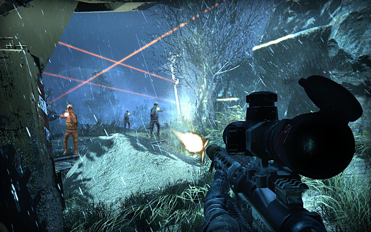 Aim at the enemy's head to shoot to save your ammunition. The enemy does not know your presence in order to put your first shot, but at the moment you shoot, your gunfire will attract the attention of the enemy. There is no way back to go. So after the start of the fight, make sure your own safety. Good luck to complete this task.