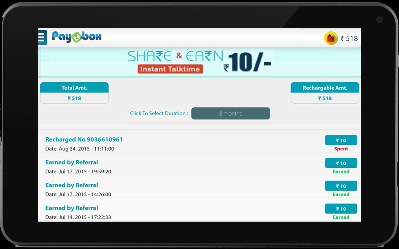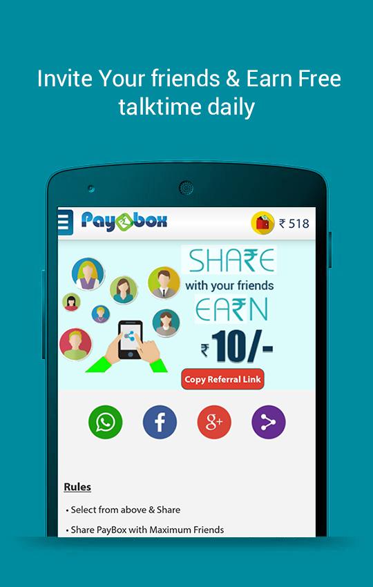 • Paybox gives unlimited free recharge by referring your friends.