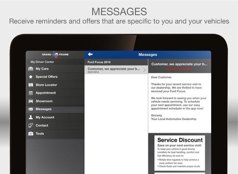 Make your vehicle ownership experience easy with the free Grand Prairie Ford mobile app. This feature-rich app allows you to get the most out of your vehicle by helping you to maintain and organize essential car details like service history, as well as save money with mobile offers and coupons!
