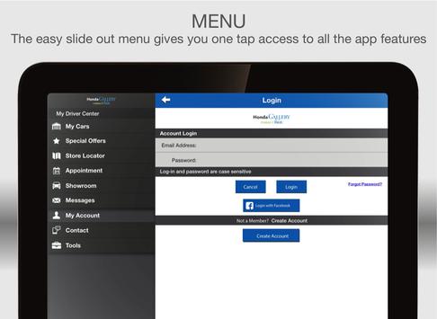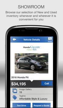 Make your vehicle ownership experience easy with the free Honda Gallery mobile app. This feature-rich app allows you to get the most out of your vehicle by helping you to maintain and organize essential car details like service history, as well as save money with mobile offers and coupons!