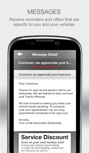 • Receive notifications when your car is ‘In Service’ and ‘Ready for Pickup’*