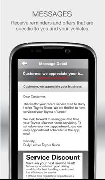 Make your vehicle ownership experience easy with the free Rudy Luther Toyota Scion mobile app. This feature-rich app allows you to get the most out of your vehicle by helping you to maintain and organize essential car details like service history, as well as save money with mobile offers and coupons!