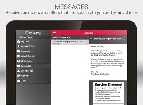 Make your vehicle ownership experience easy with the free My Toyota of Nashua mobile app. This feature-rich app allows you to get the most out of your vehicle by helping you to maintain and organize essential car details like service history, as well as save money with mobile offers and coupons!