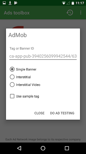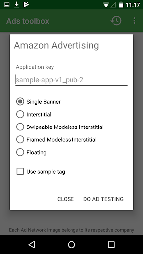 This application helps you to test AdMob, DFP or Amazon Advertising mobile advertising tags or Interstitial ad units.