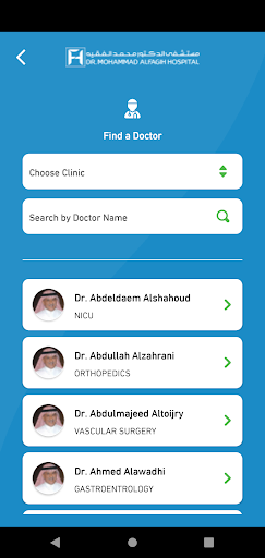 Dr. Mohammed Al Fagih Application is a free and provides a wide range of Electronic Services to all Dr. Al Fagih Clients. The Application reflects the medical group focus on quality services and commitment towards providing premier healthcare services and Radical technology to its valued patients. The Application supports the Arabic & English Languages and has the following features: Open a new medical file Online Appointment Booking & rescheduling Add and manage family files Insurance approval status and view insurance cards Find a doctor and ask your doctors Doctor profiles Lab results Medical prescriptions View radiology reports and images Sick leave reports Eye measurements Vital signs Track your blood sugar, pressure, and weight My vaccines Child vaccines reminders Receive monthly medical reports Request medical report Notifications and reminders Hospitals contact numbers Hospitals, Pharmacies Locations. Accessibility for partially bind Direct customers support Dr. Mohammed Al Fagih Hospital is a highly reputable and one of the largest providers of comprehensive healthcare services in the Middle East.