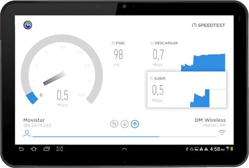 Mide la velocidad de navegación de tu internet y vizualizalo en un gráfico en tiempo real, observa el ping, velocidad de upload y de download