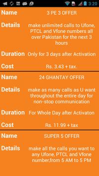 contains info about all INTERNET 2g packages information , all 3g packages for ufone info also you can easily activate & deactivate from the app.
