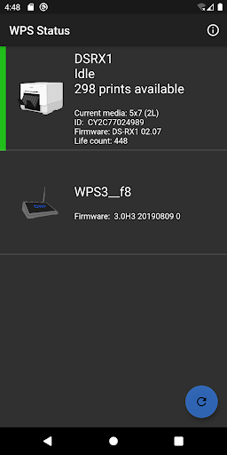 Use the 'WPS Status' mobile application to see the status of DNP printers and the DNP Wireless Print Server at your important photo shoot event.