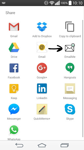 by selecting EmailMe from the share options on your device and apps.