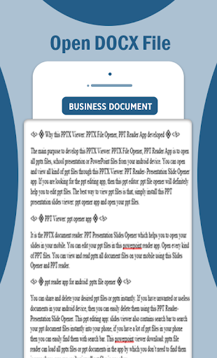It is the docx viewer app for android: word file reader which helps you to open your word files in your mobile. You can edit your docx files in this docx reader and viewer app. Open every kind of Word files. If you are looking for the app to open docx files, try this open word documents: docx reader app.