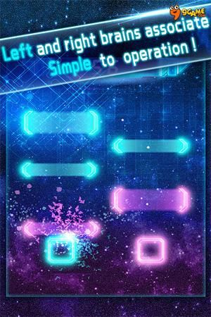 Players must control the two different color squares--blue and pink--at the same time to match the barrier's color when it falling down to keep the two squares in same color with the barriers.