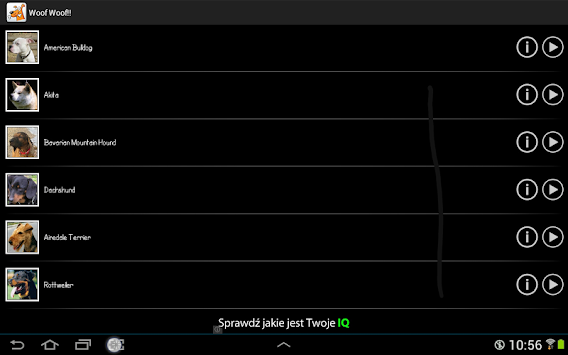 Woof Woof is a very friendly barking app :) Not like all other apps it has a nice, friendly layout and good quality dogs pictures. Our dog sounds are 100 % real, mentioned dog breed sounds.