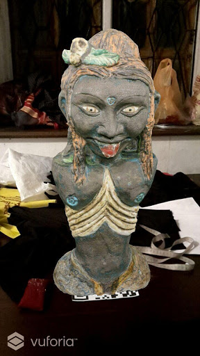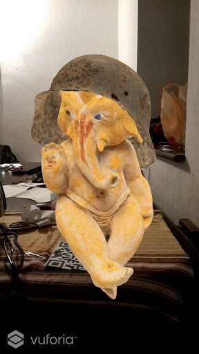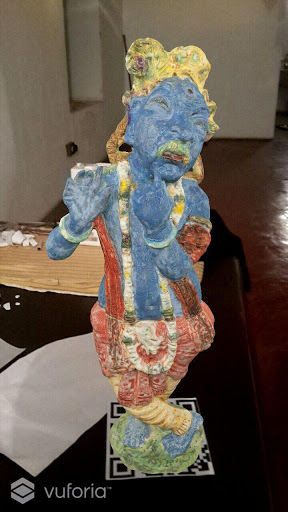 There are Shiva, Ganesha, Krishna, Kali, Laksmi sculptures inside, and all of them connected to corresponding printed marker. You just start the application and look through the camera on a marker, you will see augmented reality digital sculpture immediately. You could turn the marker on the table and the sculpture will turn also. The other way you could walk around the marker and experience the artform like in real world.