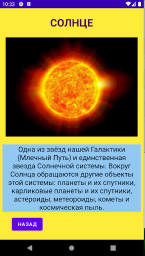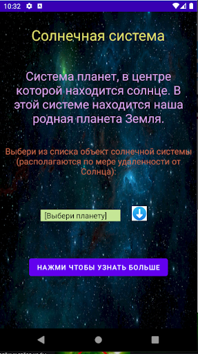 An application that tells about the objects of the solar system. It will help to learn and learn more about them.