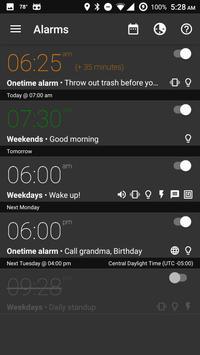 * Set up alarms which only trigger on certain dates / date ranges, e.g. to wake up at 9 am during your vacation.