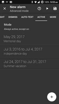 * Set up "active ranges" - dates during which the alarm won't trigger, e.g. your vacation. No need to manually deactivate the alarm on your last work day and reactivate it the night before - and no chance that you'll forget and show up late