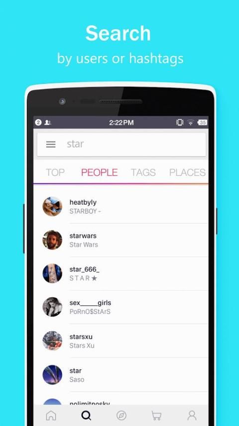 - Search for fantastic photos & amazing videos by hashtags & users.
