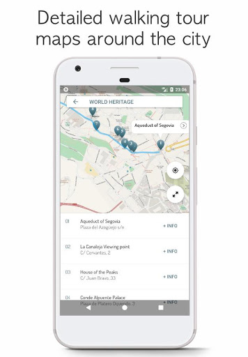 It also doubles as a detailed map of the city and province of Segovia with which you can find your way to other attractions by GPS. It works offline, you don't need an internet connection.