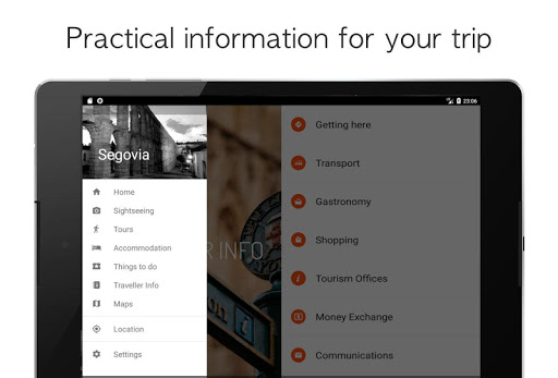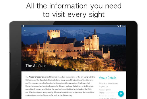Sights 2Go Segovia is a complete travel guide that you can carry with you on your phone. It's a smart city guide that helps you find Segovia's most worthwhile sights and popular attractions, detailed walks around the city, best accommodation in city, essential information for your trip and more.