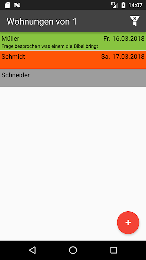 To make personal notes you can make entries for every visit. Through coloring of the items it is easy to distinguish between who wants be visited again and who doesn't.