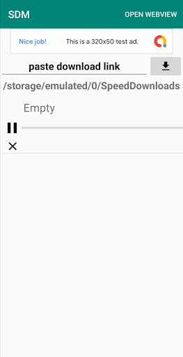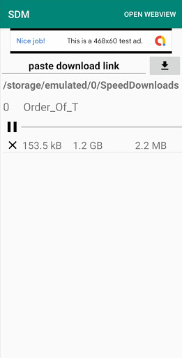 Quick and simple download manager *Uses custom webview to get download *Can act directly on a download link *Show progress and download speed *Can pause/resume any download