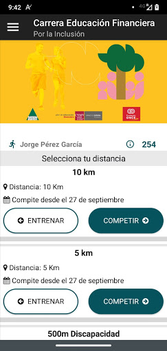 App Oficial de la Carrera por la Educación Financiera y la Inclusión. Te permite participar y aparecer en clasificaciones en la carrera de 10Km, 5Km y 500 metros desde cualquier lugar.