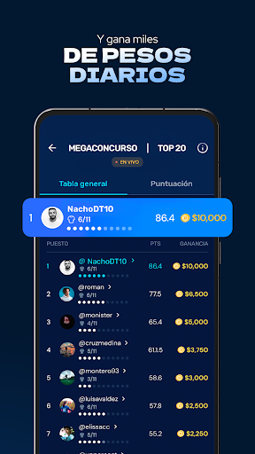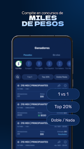 - Juega en concursos Top 20, en los que gana el 20% de los jugadores que mayor puntaje sumó; Doble o Nada, donde ganan el 40%, y 1 vs 1, en los que podrás jugar un mano a mano contra otra persona