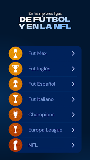 Arma tu equipo con los cracks de las mejores ligas: el fútbol mexicano, el inglés, el italiano, el español, el alemán, la Champions, en la Copa del Rey, la Liga Europea , la Supercopa, y en la NFL.