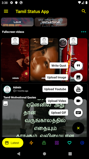 Full Screen Video Status for WhatsApp is Tamil languages Video Status! We are providing latest Status in various categories. This apps is updated regularly so stay tuned for new additions.