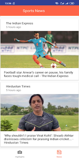 Sports news i.e. news about cricket, football, hockey, volley ball and other games will available at sports segment.