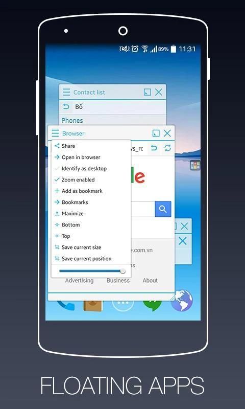 And now you have the ability to use multiple applications with different window right on your phone with apps Multitasking - Floating our Apps. Floating Apps will help you run windows multitasking several applications right on your phone screen, allowing you to run one way of true multitasking like on your computer, laptop. You can easily change to smaller size of the application window.