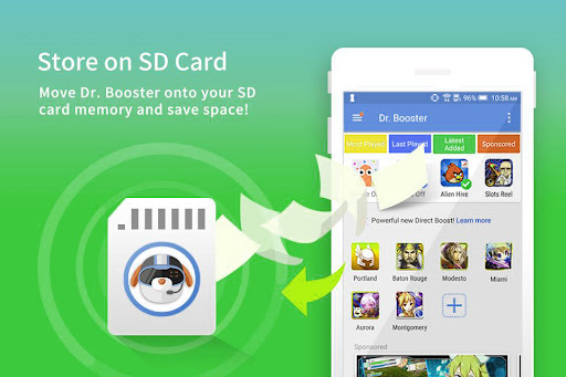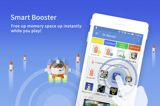 Dr Booster can smartly frees up memory space (RAM) to boost your phone, speed up Android game and apps, so your favorite games—as well as over 70,000 other apps—run faster and smoother!