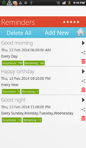 Play, edit or delete scheduled reminders with ease
