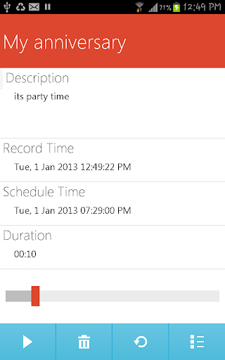 Quickly add a voice reminder and schedule it to play at your preferred date and time