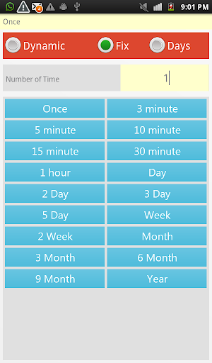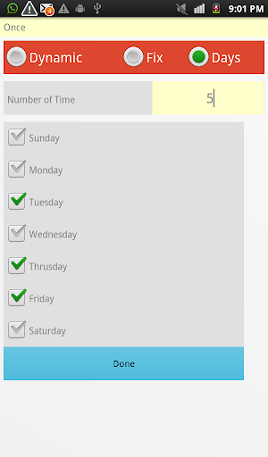 Advanced Repeat option i.e weekdays,custom minutes and much more