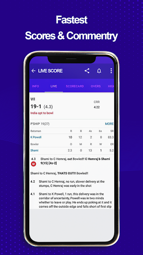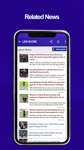 This livescore app provides fastest score updates and ball by ball commentary in this way you can enjoy the match more. This live cricket app also provides various cricket news from all around the word in the app. You'll also notified for the latest news via the notifications.