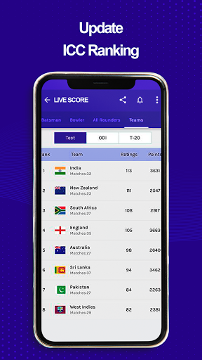 🎖 ICC ODI, Test and T20I team and player rankings.
