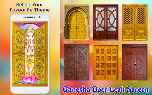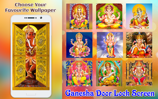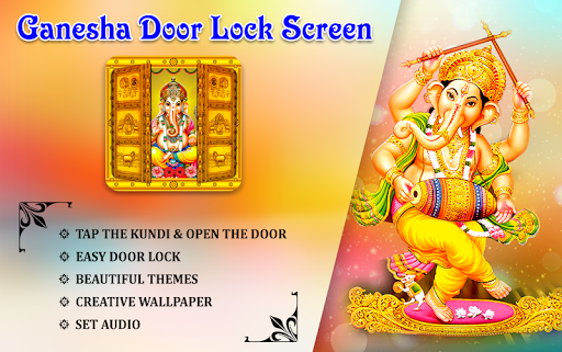 Ganesha Doors Lock Screen for your mobile home Screen. Option to set lock screen or live wallpaper. Touch to doors to unlock lock screen. Virtual Ganesha Door Lock