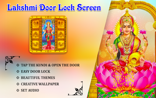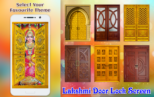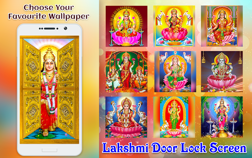 Lakshmi Doors Lock Screen for your mobile home Screen. Option to set lock screen or live wallpaper. Touch to doors to unlock lock screen. Virtual Lakshmi Door Lock