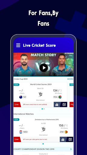 Live Cricket scores app provides all the updates about your favorite cricket teams and players. This app contains cricket score, various statics, and full coverage of the series, player details, cricket news and many more.