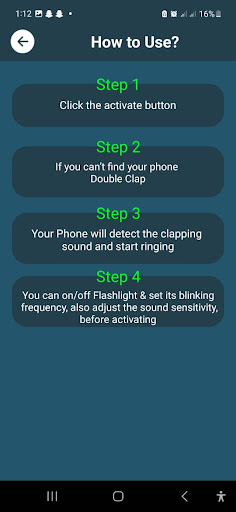 Action Trigger: If the clap to find the phone with flashlight app recognizes the specific clap pattern, it triggers an action, such as making the phone ring loudly, even if it's in silent or vibrate mode.