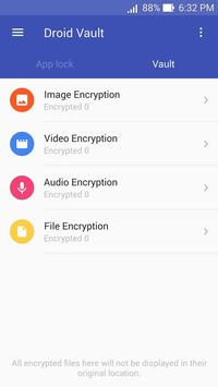 *Droid Vault is an amazing way to protect your privacy and security on your Android phone. With Droid Vault, Once you set lock for individual APPs and encrypt multimedia files – nobody will be able to access them without a correct master password - giving you entire control over who sees what.