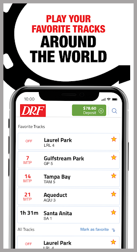 With DRF Bets, you can easily place horse racing bets and watch tracks live directly on your phone or tablet device in HD. Get streaming results, past performances, and official DRF handicapping products in the palm of your hand. Players get access to free DRF Formulator past performances and up to 5% weekly cashback. Live and legal mobile betting on horse races worldwide! Exclusive Beyer Speed Figures for each runner's past three races. Selections, expert race analysis, and closer looks including free horse racing picks and tips for select races worldwide.